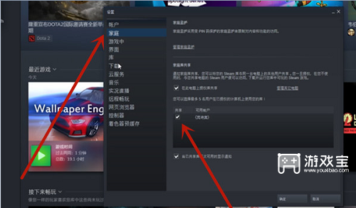 2、共享然后点击家庭,游戏按下确定即可共享 。共享